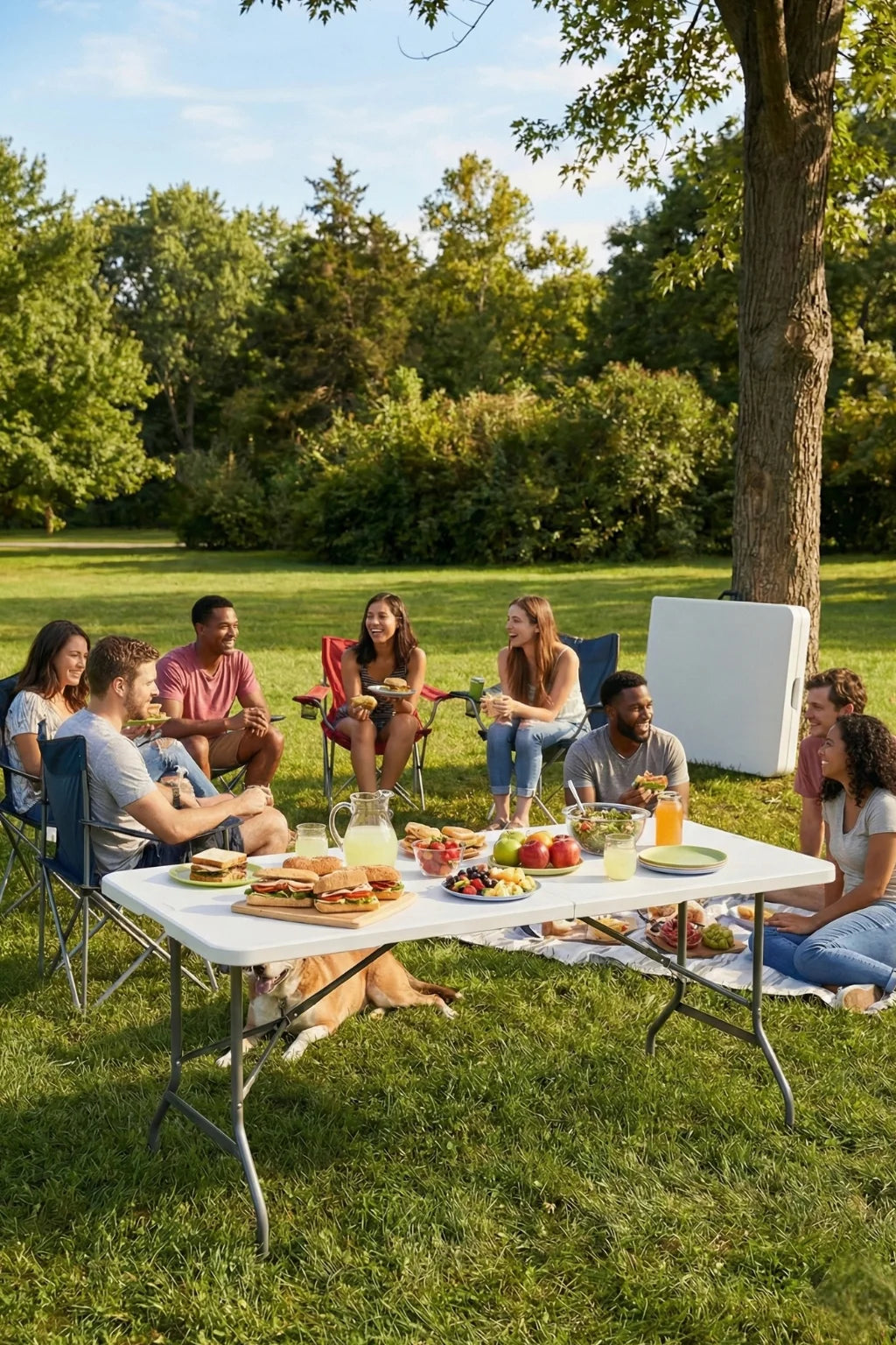- Generous tabletop fits multiple settings, from party layouts and craft projects to camping equipment and work materials